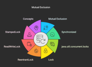 ├── 1. Mutual Exclusion → Locking, reentrancy, intrinsic monitors
