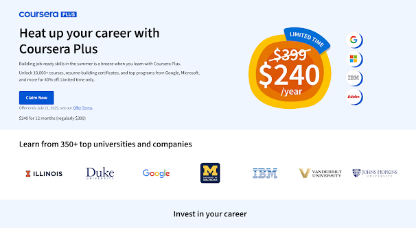 - Claim your deal: Enroll in Coursera Plus at $240 before July 21, 2025